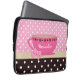 Meisjes Teacup Pink en Brown Polka Dot Bow en Name Laptop Sleeve