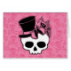Deze kleine schedel draagt een schattige bovenste hoed met roze bogen en bloemen.