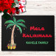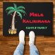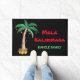 Mele Kalikimaka Feestelijke Vakantie/Kerstmis Deur Mat. Deze leuke deurmat is versierd met een waterverf palmboom, kerstverlichting en ananas. De tekst kan worden aangepast. Personaliseer deze mat met jouw naam. Originele Waterverf © Michele Davies.