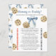 Een klein koekje is onderweg! Waterverf baby shower partij. Waterverf koekjes met chocola en flessenmelk met blauwe strik.