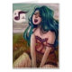 Een product met een mooi en kleurrijk design, een jonge, groene vrouw die een lied zingt, in een weide.