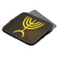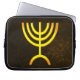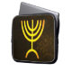 Een digitale weergave van de joodse zeven-vertakte menorah (Hebreeuws: מְ נ רָ ה ). De zeven-vertakte menorah, die wordt gebruikt in het draagbaar toevluchtsoord dat door Mozes in de wildernis en later in de tempel in Jeruzalem is opgezet, is sinds de oudheid een symbool van het jodendom en is het symbool op het wapen van de moderne staat Israël. De kohanim stak elke avond de menorah in het Sanctuary aan en maakte het elke ochtend schoon, waarbij de wieken werden vervangen en verse olijfolie in de bekers werd gestopt. Er is gezegd dat de menorah een symbool is van de natie Israël en onze missie om "een licht voor de naties" te zijn (Isaiah 42:6). Onze heiligen benadrukken dat licht geen gewelddadige kracht is; Israël moet zijn missie volbrengen door een voorbeeld te stellen, niet door geweld te gebruiken. Dit idee wordt benadrukt in de visie in Zechariah 4:1-6. Zechariah ziet een menorah, en G-d legt uit: "Niet bij de wil, noch bij de macht, maar bij mijn geest." G-d onthulde het ontwerp voor de menorah naar Mozes als volgt (Exodus 25:31-40): 31 En je moet een lampje zuiver goud maken. Van gehamerd werk moet het lampje gemaakt worden. Haar basis, haar bijkantoren, haar bekertjes, haar knoppen en haar bloesems moeten er vanaf komen. 32 en 6 takken raken aan de zijkant uit, drie takken van het lam aan de ene kant en drie takken van het lam aan de andere kant. 33 Drie bekertjes in de vorm van amandelbloemen bevinden zich aan de ene kant van de takken, met knoppen en bloesems afwisselend, en drie bekertjes in de vorm van amandelbloemen aan de andere kant, met knoppen en bloesems afwisselend. Zo gaat het met de zes takken die uit het lam lopen. 34 Op de lampvoet zijn vier bekertjes in de vorm van amandelbloemen, met de knoppen en de bloesems afwisselend. 35. De knop uit twee takken is eruit en de knop uit de twee andere takken is erbuiten en de knop uit twee andere takken is erbuiten, voor de zes takken die uit de stand lopen. 36 Hun knoppen en hun bijkantoren moeten er buiten varen. Het is allemaal één stuk gehammerd werk, van zuiver goud. 37 En u moet er zeven lampen voor maken; en de lichten moeten oplichten, en ze moeten op het vlak ervoor schijnen. 38 De snuffelaars en de brandweerhouders zijn van zuiver goud. 39 Van een talent van puur goud zou hij het moeten maken met al die spullen. 40 En zie dat je ze maakt na hun patroon dat je in de berg getoond werd. Tot 2009 werd de vroegste geconserveerde weergave van de menorah van de tempel in een fries op de Arch van Titus afgebeeld, ter herdenking van zijn triomfale parade in Rome na de vernietiging van Jeruzalem in het jaar 70. In 2009 werden echter de ruïnes ontdekt van een synagoge met aardewerk van voor de vernietiging van de tweede tempel onder land in Magdala, eigendom van de legionairen van Christus, die een centrum voor vrouwenstudies hadden opgezet. Binnen dat de ruïnes van de synagoge een rechthoekige steen ontdekt werden, die op het oppervlak, naast andere carvings, een afbeelding van de zeven vertakte menorah had, die duidelijk verschilt van de afbeelding op de Arch van Titus, die waarschijnlijk door een ooggetuige werd afgesneden naar het daadwerkelijke menorah-cadeau destijds in de tempel in Jeruzalem. Deze menorah heeft veelhoekige armen, niet afgerond, en de basis is niet gegradueerd, maar driehoekig. Op de graftomaten en monumenten uit de 10e eeuw werden de zeven vertakte artefacten weergegeven als een veelgebruikt symbool van het jodendom en het joodse volk. In tegenstelling tot sommige moderne design, bevatten de oude menorah niets dat lijkt op zeven kaarsen, omdat ze destijds niet bestonden.