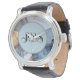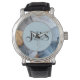 This vintage watch is shown with a Jesus is the way print and is shown in an ink abstract print in a multi colors blue and grey.