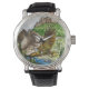 An original watercolor watch displaying the beauty of an eagle in flight! It is a beautiful way to carry strength, courage, and freedom with you everyday!