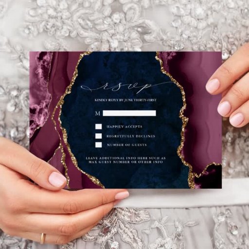 Menu Navy, Bourgogne & Gold Agate Wedding