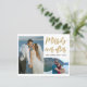Gelukkig nog na de bruiloft aankondiging kaart gepersonaliseerd met 2 foto's van de pasgetrouwden en vakantie wensen!