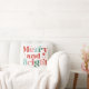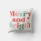 Retrostijltekst leest Merry en Bright op deze kleurrijke kerstkussen.