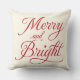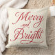 Seizoensgebonden kussen zijn voorzien van elegant "Merry and Bright" tekstontwerp met steraccent en een patroon van rode en zachte witte/lichte ijzige rietstrepen in kardinaal.