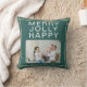 Merry Jolly Happy Custom Family Foto Green Kerstmis Pillow. Fijne, vrolijke tekst in een moderne witte typografie op een donkergroene achtergrond. Voeg je familiefoto, familienaam en jaar toe. De liefdevolle gepersonaliseerde feestdag.