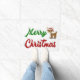 Doordenmat met vrolijk kerstfeest in 3D groene en rode tekst en een rendier. Verkrijgbaar in verschillende grootten.