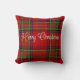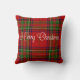rode pleisterkussen met vrolijk kerstfeest. Rode vlecht is een prachtig, traditioneel kerstpatroon.