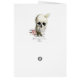 Een schedel, met een roos tussen haar tanden en een vlinder, legde een achtergrond van een handgeschreven getuigenis uit de processen van de Salem-heks.© Wickly Lovely