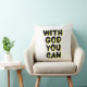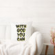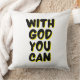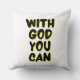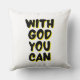 Dit gooi kussen ontwerp heeft de woorden "Met God You Can" in een bellenstijl print plus zwarte letters en gele schaduwcontour met een typografische stijl in dit op geloof gebaseerde thema. Dit kussen is gemaakt van hoge kwaliteit simplex gebreide stof onze kussens zijn zacht en rimpelvrij de hoes is machinewasbaar.