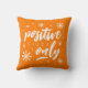 Voeg goede trillingen aan om het even welke ruimte met dit werpt kussen toe, die een eenvoudig maar vrolijk "positief"bericht met gestileerde bloemen op een vrolijke oranje achtergrond kenmerkt. Shows omkeren, identiek ontwerp. Ontwerp © W.H. Sim. Zie meer op zazzle.com/wordsofwhimsy