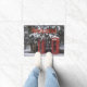 met sneeuw bedekte oude rode telefooncellen deurmat