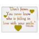 Niet fronsen. Je weet nooit wie verliefd wordt op je glimlach..