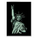 Het Vrijheidsbeeld in een zwaar metaal met rotsen stelt voor. Vectorstijl tekenen, in een mooie groene patina, op t-shirts, hoodies, stickers, giften.