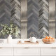 Voeg een vleugje eigentijdse sophisticatie toe aan uw ruimte met dit metalen zilveren en grijze chevron-behang. Met een mix van visgraatpatronen en geborstelde metalen texturen is dit peel-and-stick ontwerp perfect voor het creëren van een moderne en luxe accentmuur. Ideaal voor woonkamers, slaapkamers of kantoren, dit slanke behang combineert moeiteloos stijl en functionaliteit. De metalen afwerking reflecteert het licht prachtig, waardoor elke ruimte wordt verbeterd met een glamoureuze en moderne sfeer.
