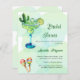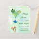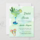 Een groene waterkleurige achtergrond versierd met waterkleurige cactus, een groot groen en blauw glas met een Margerita-cocktail, kleurrijke maracas Personaliseer en de naam van de bruid en details. 1 vel = 1 uitnodiging bedrukt rand tot rand.