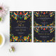 Dit Mexicaanse kleurrijke Cinco de Mayo Fiesta Wedding Save the Date-ontwerp toont een levendig Mexicaans volkskunstgeïnspireerd thema, met kleurrijke vogels, bloemen en een centraal hartmotief. De felrode, gele, blauwe en groene tinten vallen op tegen de diepzwarte achtergrond en creëren een feestelijke en levendige sfeer. De symmetrische opstelling van de vogels en bloemen voegt balans en harmonie toe, perfect voor huwelijksuitnodigingen of feestelijke briefpapier.