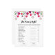 De Mexican Floral Price is Right Baby shower Game Kaart is een levendige en feestelijke manier om gasten te vermaken tijdens uw feest. Met gedurfde en kleurrijke bloemenaccenten geïnspireerd op traditionele Mexicaanse design, voegt het culturele charme en schoonheid toe aan uw evenement. Gasten zullen plezier hebben met het raden van de prijzen van baby essentials, waardoor het zowel interactief als luchtig is. De lay-out is schoon en goed gestructureerd, waardoor er voldoende ruimte is om antwoorden op te schrijven. Gedrukt op hoogwaardige karton, is de spelkaart duurzaam en gemakkelijk te hanteren. Het opvallende ontwerp brengt energie en vreugde, perfect als aanvulling op een fiesta of kleurrijk douchethema. Deze kaart trekt niet alleen gasten aan, maar maakt ook een leuke herinnering voor de aanstaande moeder. Ideaal voor groepsspel, het helpt het ijs te breken en iedereen erbij te betrekken. Een levendige en praktische toevoeging die de viering met zowel plezier als stijl verbetert.