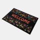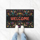 Personaliseer en verwelkom de Gast met deze unieke "Een van een soort" Mexicaanse Otomi Doormat! Het is voorzien van een Mexicaanse Otomi-afdruk met dieren, vogels en bloemen in levendige heldere kleuren...op een zwarte achtergrond!