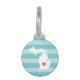Laat je goede vriend shows wat trots van de thuisstaat met dit schattige Michigan ID-label. Het ontwerp is voorzien van een witte silhouetkaart van de staat Michigan met een roze hart binnenin, op een toon op de tonus turquoise stripe background. Voeg de naam van uw huisdier en contactinformatie aan de rug in witte letters op een aqua achtergrond toe.