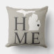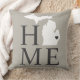 Stijlvolle welkomstkussen bieden een typografisch ontwerp met de tekst "Home" en de staatskaart van Michigan. De zachte zwarte / onyx hartstadstiker kan over de stad worden geplaatst waar u via Customize leeft. Warm grijze, zachte zwarte en witte kleuren. Een patroon van horizontale strepen drukt omhoog de rug van de kussen.