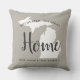 Stijlvolle welkomstkussen bieden een typografische vormgeving met de scripttekst "Home" en de staatskaart van Michigan. Personaliseer je stad en je gezin. Warm grijze, zachte zwarte en witte kleuren. Een patroon van horizontale strepen drukt omhoog de rug van de kussen.