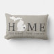 Stijlvolle welkomstkussen bieden een typografisch ontwerp met de tekst "Home" en de staatskaart van Michigan. De zachte zwarte / onyx hartstadstiker kan over de stad worden geplaatst waar u via Customize leeft. Pas je eigen aan met je familiemonogram of je huisplaatsnaam. Warm grijze, zachte zwarte en witte kleuren. Een patroon van horizontale strepen drukt omhoog de rug van de kussen.