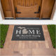 Stijlvol "Welkom bij ons thuis"-model bevat een typografisch ontwerp met de staat Michigan-kaart. Pas het monogram met de achternaam en de naam van je woonplaats aan. Omvat een zwarte burlap achtergrondlaag met een rustige textureerde verschijning. Neutrale houtskool grijs, taupe en witte kleuren.