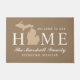 Stijlvol "Welkom bij ons thuis"-model bevat een typografisch ontwerp met de staat Michigan-kaart. Pas het monogram met de achternaam en de naam van je woonplaats aan. Omvat een burlap achtergrondlaag met een rustige textureerde verschijning. Neutrale tan, beige en witte kleuren.