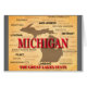 Het afbeelding van de staatstrots van Michigan, inclusief platensilhouette met steden, steden en bijnamen.