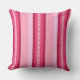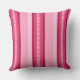 Klassieke, Mid-Century Moderne luifel strepen buitenkussen in zachte, gemengde kleuren, met een middelste trellis patroon accentstreep, in medium en bleek roze met diepe fuchsia roze en bordeaux wijnaccenten