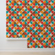 Dit is een stijlvol middeleeuws modern abstract halve cirkelpatroon in sinaasappel, rood, blauwgroen en bruin. Het is geweldig uitziend behang voor iedereen die van retro geometrische design houdt