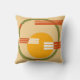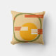 Deze gooiende kussen hebben een modern, modern, abstract ontwerp van een gouden cirkel in een groene cirkel met oranje en witte strepen.