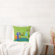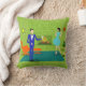 Dit Mid Century Modern Couple Sierkussen ziet eruit als een scène uit een romantische komedie. Het minimalistische kunstontwerp uit de jaren zestig biedt een aantrekkelijk cartoon koppel dat thuis geniet van een romantische avond. De verfijnde kamer is opvallend voorzien van een groene stenen muur met een aanstootgevend vuur in de haard. De meubels in de kamer omvatten een oranje, loungestoel met bijbehorende voetsteen, een rode, starburstwandklok, een gele, sputnik lichtfixatie, en een oranje zijtafel, die is voorzien van een groene, draagbare platenspeler. Op de vloer naast de eindtafel, kan een vinylrecord gezien worden die uit een kitschy albumcover pokt. In het midden van de groene vloer, is er een groot, rechthoekig, blauwgroen tapijt. In het midden van de scène hebben we een zeer gesofisticeerd stel. Er is een man in een koninklijk blauw pak, wit shirt en blauw boegstropdas. Het lange, donkere en knap man kijkt naar zijn mooie metgezel. De elegante, raven harige vrouw draagt een flouncy aqua jurk. Ze hebben elk een kristal martinieglas met een drijvende olijf. Proost! Hier naar de perfecte avond thuis! De tegenovergestelde kant van deze kussen heeft een groen, steenpatroon.