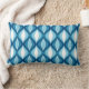 Lumbarkussen met een Mid-Century Modern diamantraster van geneste marquisvormen - middelgroot denim blauw en lichtblauw met witte, donkere en indigoaccenten
