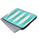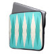 Deze Mid Century Modern Argyle-laptophoes is voorzien van een levendige, turkooistische achtergrond en een patroon van vloeiende, doorschijnende blauwgroen diamanten die grotere, roomdiamanten overdekken met gouden kleurige, ruimtespecuikers. Deze minimalistische geïnspireerde, gedeconstrueerde argyle is een simplistische terugval van het grotere atoomtijdperk dan het leven dat het decoratieve landschap van de jaren vijftig en zestig domineerde. Dit kitschy ontwerp doet denken aan alles, van de bowlingsteegjes van de Palm Springs tot de televisieschermen die je bij je oma gebruikte.