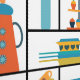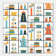 Slanke, minimalistische, grafische moderne retro-keukenplanken uit het midden van de eeuw, met kopjes, koffiepot, koffie- en theebussen, bakgerechten, pannen en cupcakes. Laat het me weten als je een andere schaal voor het patroon wilt. Ik zou graag mijn ontwerp in de wereld zien - label me op IG @parry_vegan.