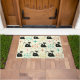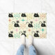 Dit is een schattig zwart atomisch katpatroon met midden-eeuwse retro-starbursts in roze, sinaasappel en blauwgroen op een lichte crème-achtergrond. Het is een geweldige deurmat voor iedereen die van katten en retro-design houdt