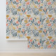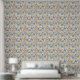 Midcentury Boho Bloemen in Koraal Mosterd Blauwgro Behang