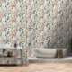 Midcentury Boho Bloemen Koraal Mosterd Blauwgroen Behang