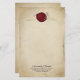 Dit op maat gemaakte briefpapieren papier heeft een middeleeuws thema. De achtergrond is een vervaagd perkament papier ontwerp dat lijkt op een middeleeuwse rol. Een gouden lijst grenst aan het papier. Bovenaan wordt een rode wasverzegeling geplaatst met een initiaal. Een voorbeeldnaam en -adres worden onderaan afgedrukt. U kunt het briefpapier personaliseren om uw eigen initiaal en aangepaste tekst op te nemen.