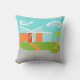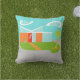 Met deze moderne middeleeuwse Cartoon House Outdoor Pillow wil je de WELCOME mat eruit halen en jezelf thuis maken! Het minimalistische kunstontwerp van de jaren '60 is voorzien van een gestroomlijnd, oranje steen en aqua glazen huis op een glans, groen, boemerang gevormd gras. Het gras vormt een oase in het midden van zijn grijze, betonomgeving. Een groene palmboom zwaait in de bries. Vier oranje springstenen leiden de weg naar de retroflector, rood, voordeur met drie rechthoekige ruiten van glas. Links van de deur houdt een turkooisbloempot een tropisch, groen plant. Het huis heeft een slopend, V-vormig wit dak dat naar twee, witte, bonen gevormde wolken richt. De hemel is een positief serene soort aqua. Niemand zal stenen uit dit moderne, glazen huisontwerp willen gooien! De tegenovergestelde kant van deze kussen heeft een oranje steenpatroon. Koop dit kitschy, ruimtegolfproduct en ben de coolste kat op je blok!
