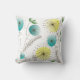 Mid-Century Modern Pillow-dandelion klokt kussen in tinten van geel en blauw met groene bladeren op een witte achtergrond. Achterkant van de kussen met coördinerend design en ondertekend door kunstenaar Gail Gabel.