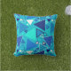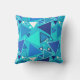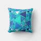 Midden-Eeuw Modern geometrisch mozaïek van geschetste driehoeken in de tinten kobalt, marine, ceruleen en hemelsblauw op een medium ceruleen blauw achtergrond buitenkussen