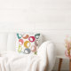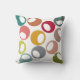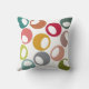Deze gooiende kussen hebben een modern design uit de midden-eeuw met cirkels in retrofades van blauwe, paarse, roze, bruin, limoen en goud met witte eicellen erin.