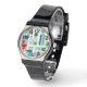 Dit dameshorloge heeft een modern ontwerp uit het midden van de eeuw van rechthoeken met rechthoeken, vierkanten, boemerangs, sterren of steruitbarstingen binnen. Als je het ontwerp leuk vindt, maar liever verschillende kleuren hebt, stuur me dan een bericht.