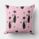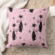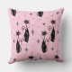 Voor de kattenliefhebbers, mijn oorspronkelijke vectorillustratie van gestroomlijnde zwarte katten, starbursts en diamanten in middeleeuwse atoomstijl, in zwart en bleek roze op een koele roze achtergrond, met gesimuleerde stof graan.